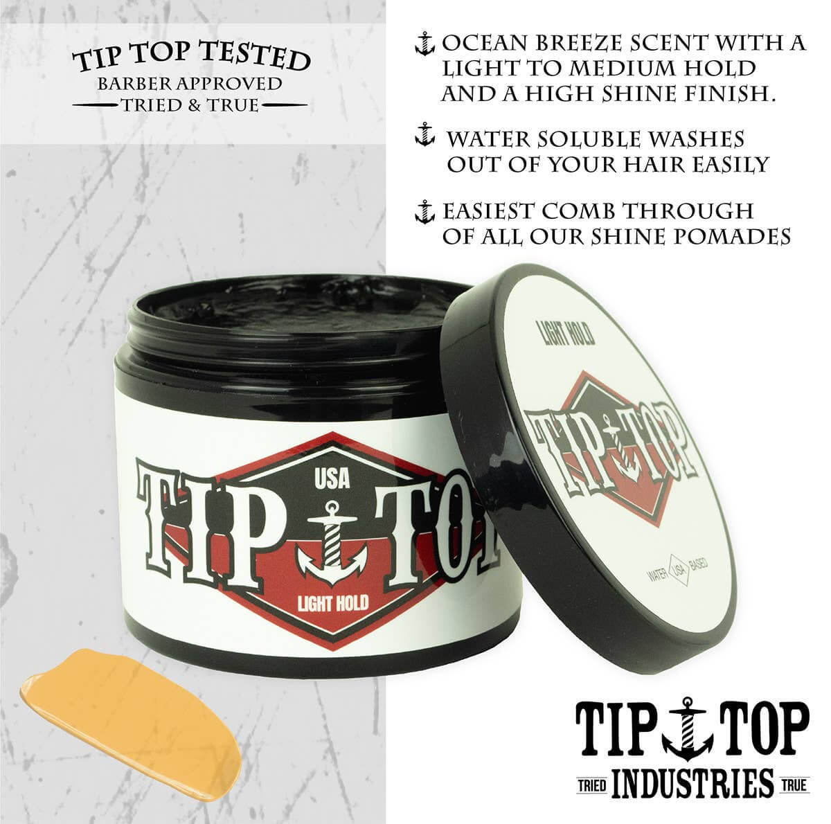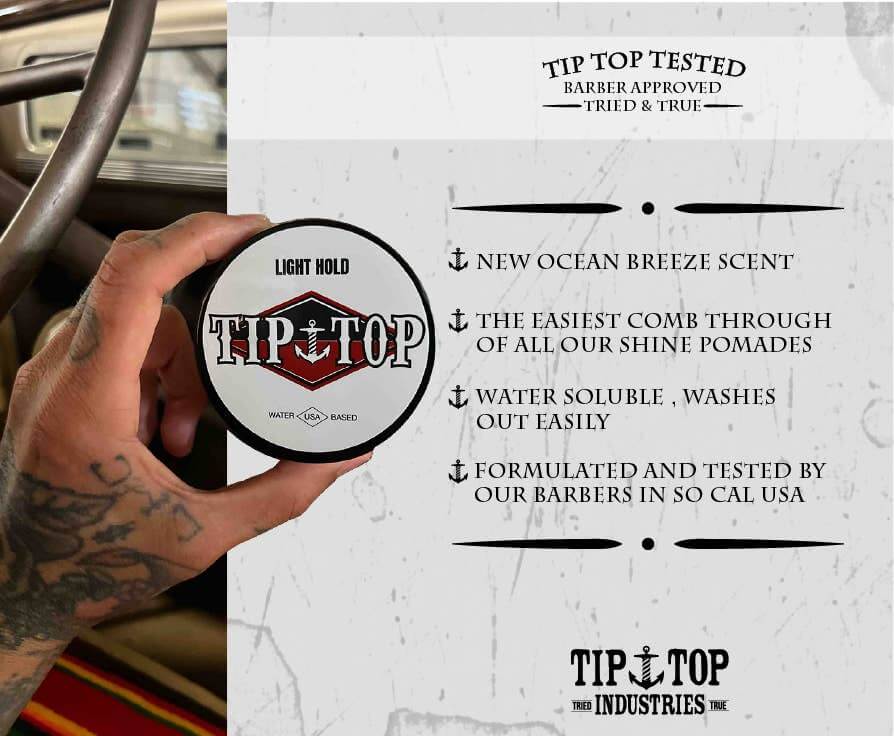 Tip Top's Light Hold Pomade has been formulated to give you the easiest comb through of all our shine pomades.